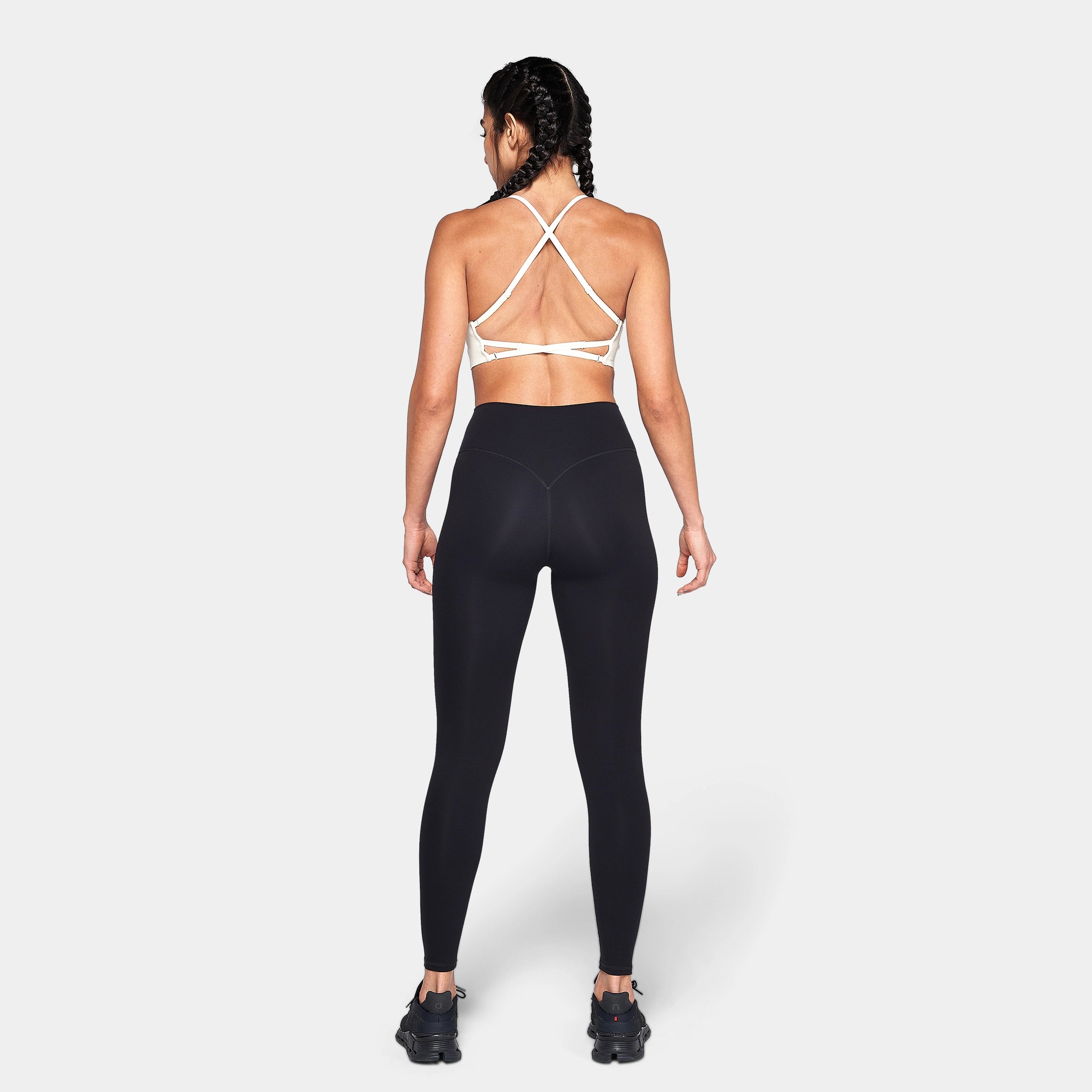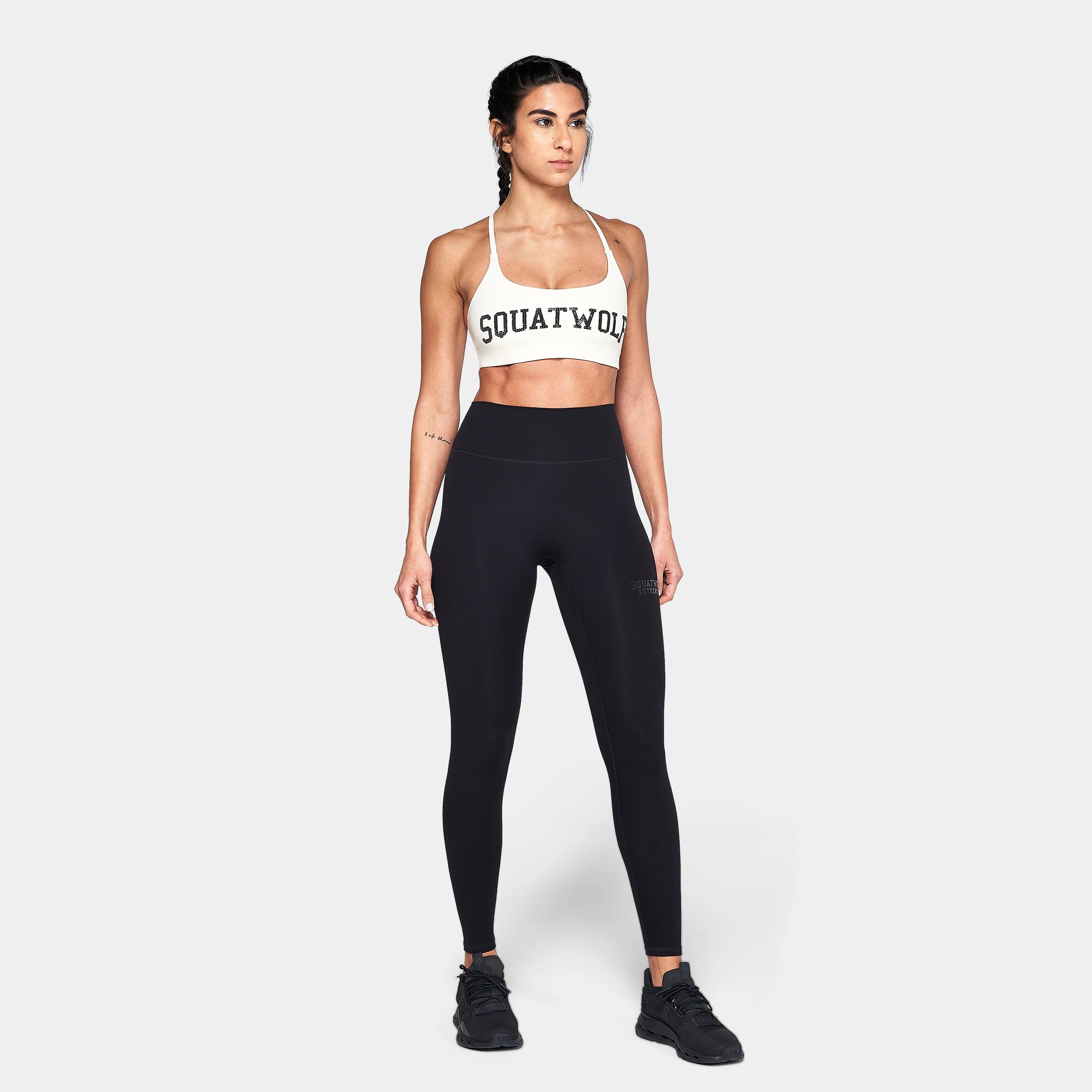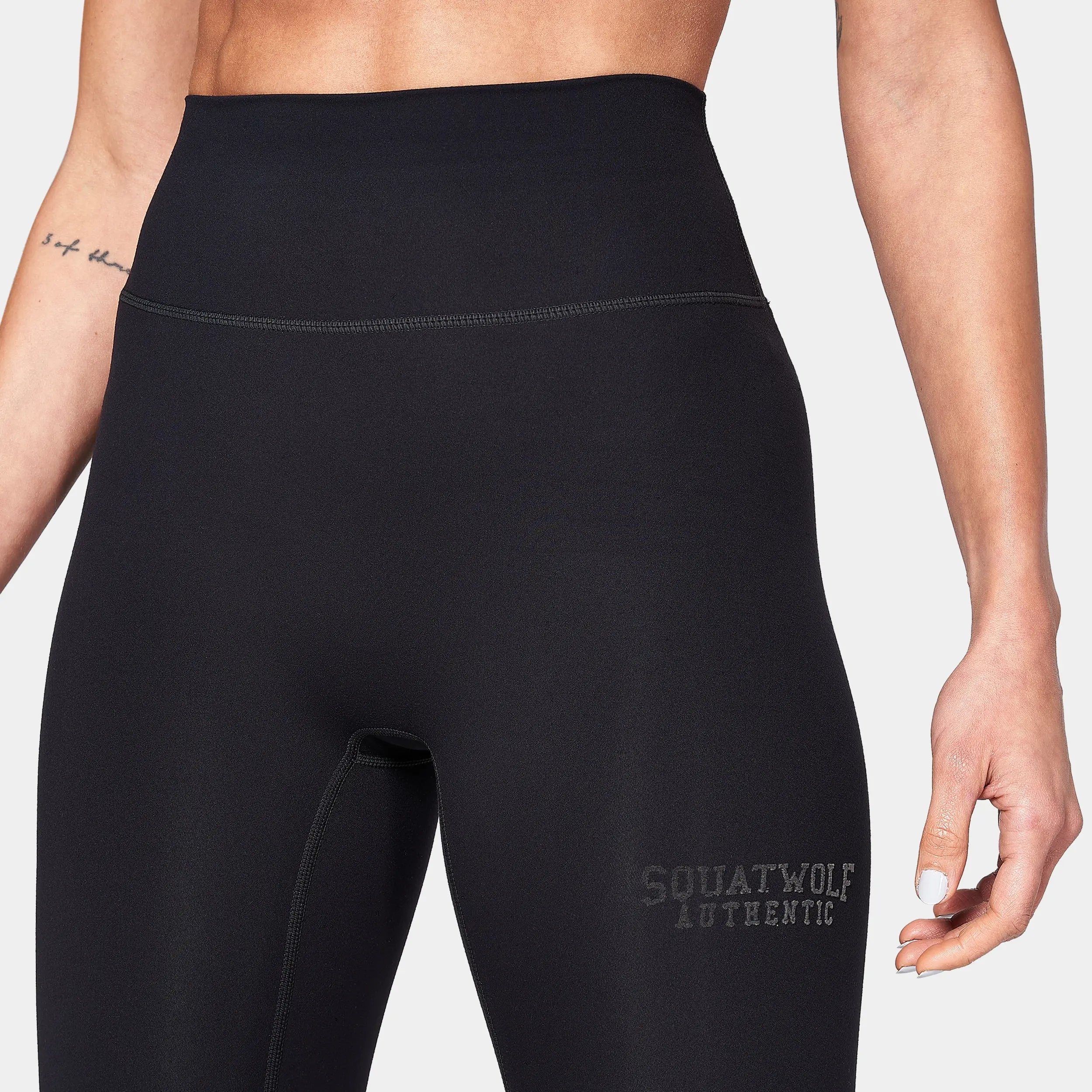 Ultra comfortable Soft brushed hand feel 4-way stretch High waisted Elastic-free and curved back waistband for a contoured fit No front rise for added comfort Authentic flock wordmark on leg Athletic fit Model Wearing Small: Height 5'9" / 174 cm // Bust: 33.5″ // Waist: 27″ // Hips: 38″ Garment measurements: Inseam length for all sizes: 27" / 69 cm