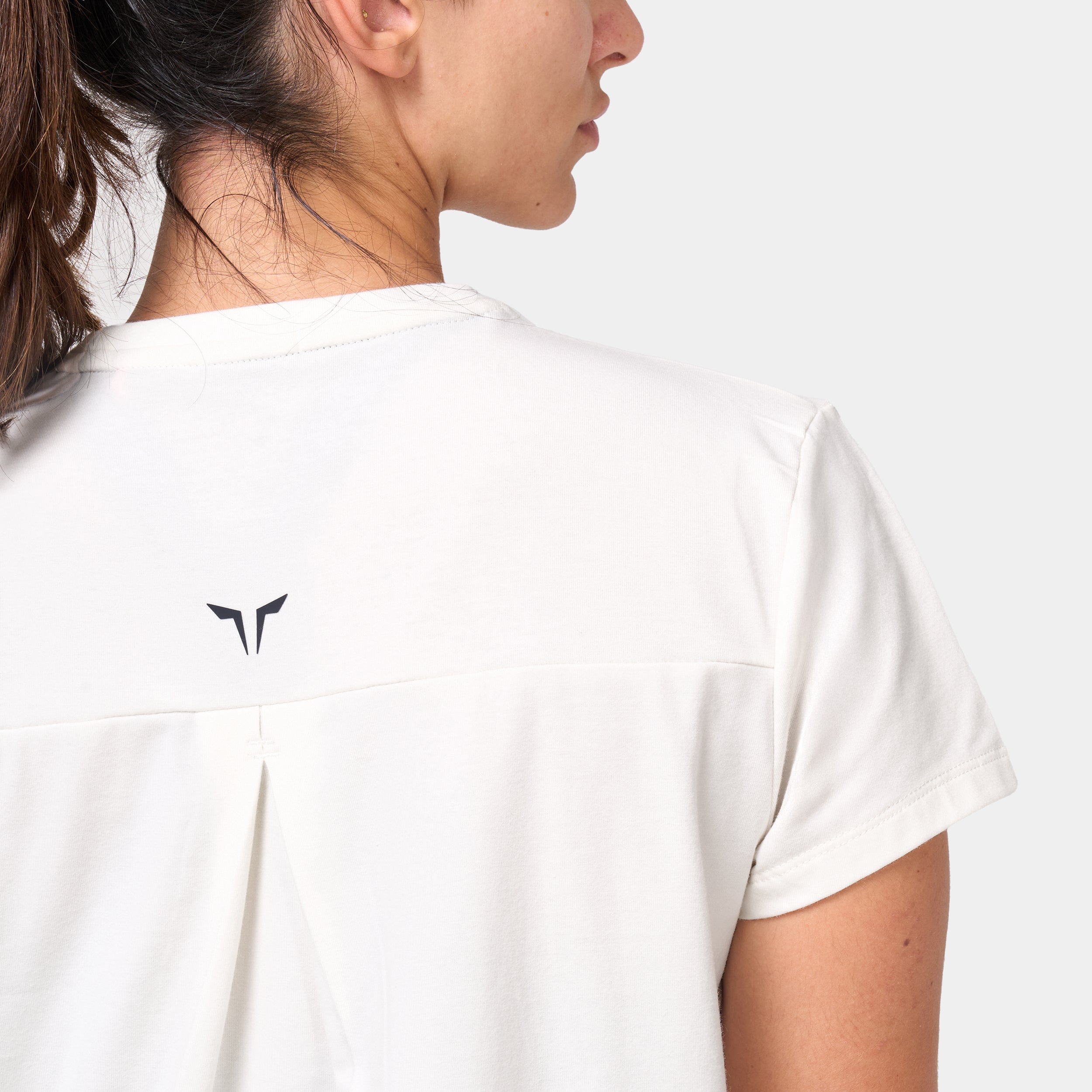 Soft against skin Breathable 2-way stretch Crew neckline Set-in cap sleeves Back yoke with center pleat Regular fit Model Wearing Medium: Height 5'6" / 169 cm // Bust: 36.5" // Waist: 31.5" // Hips: 37.5"