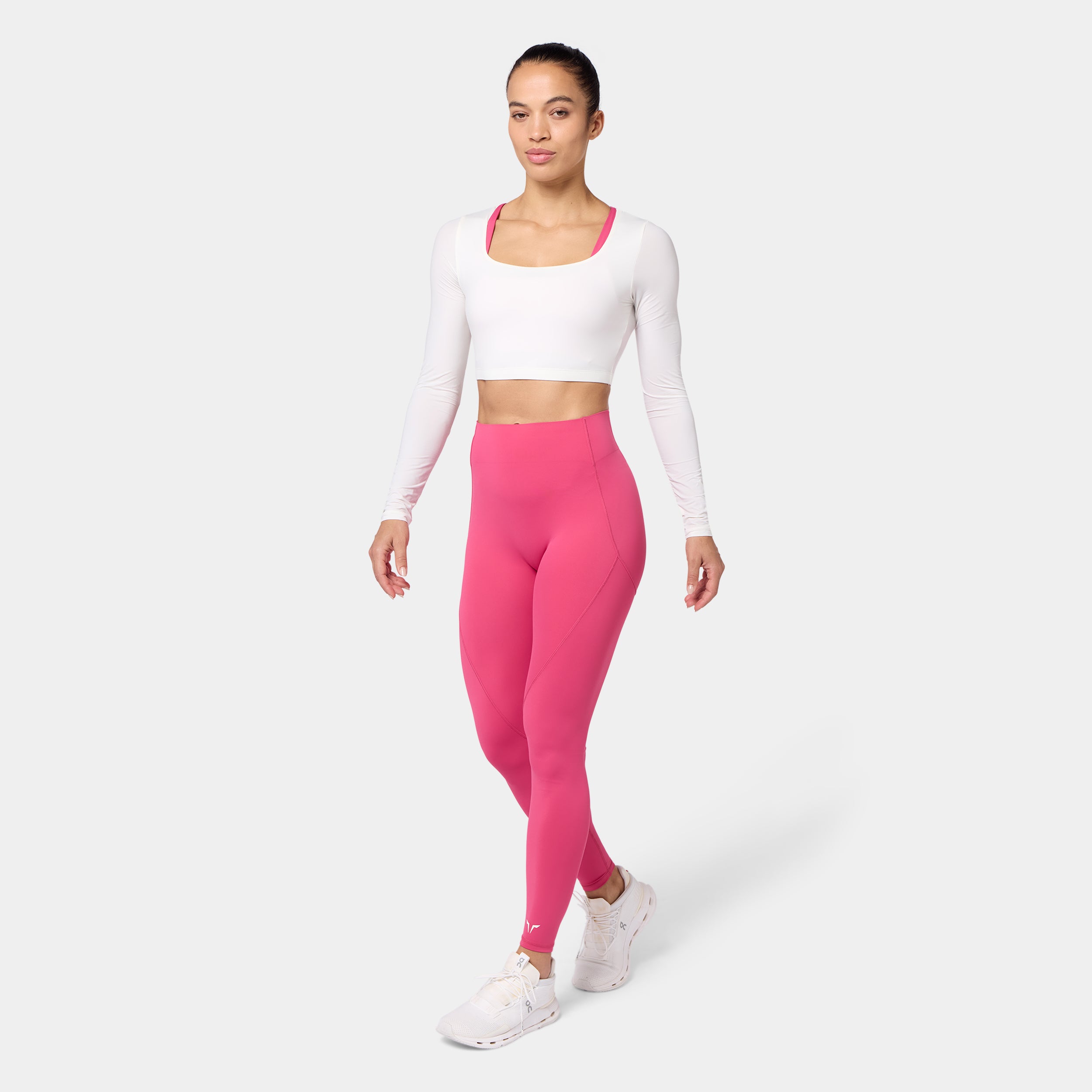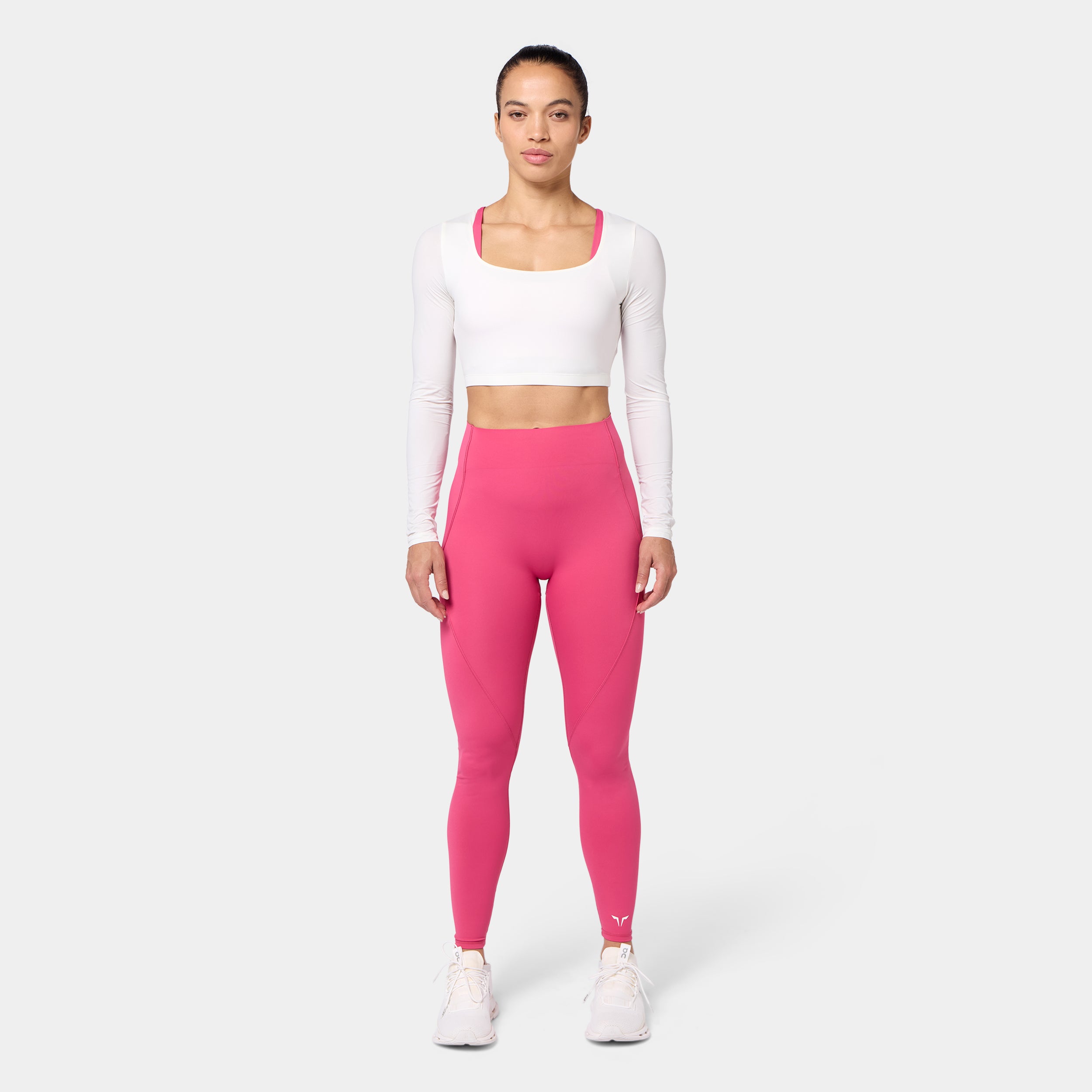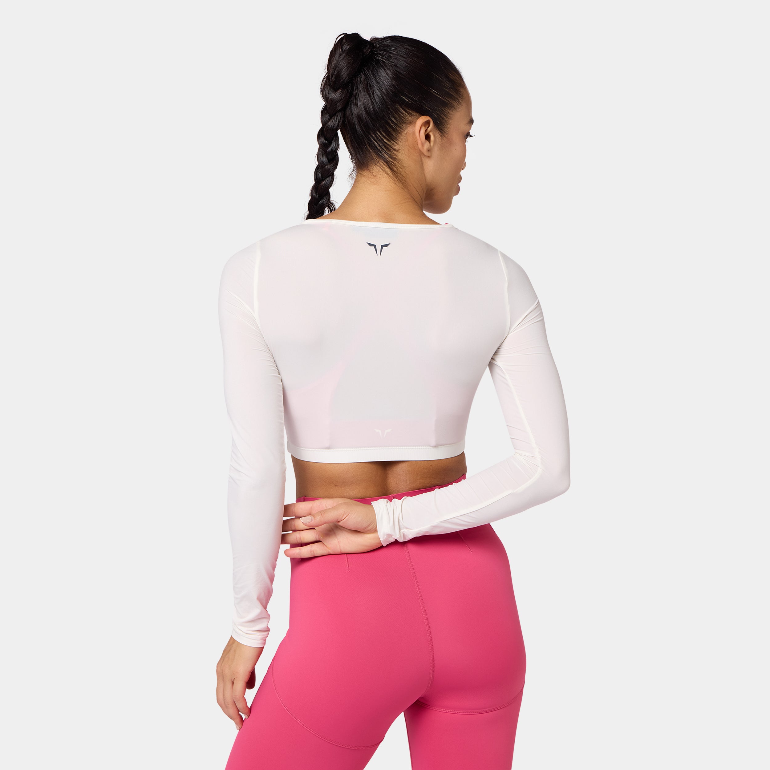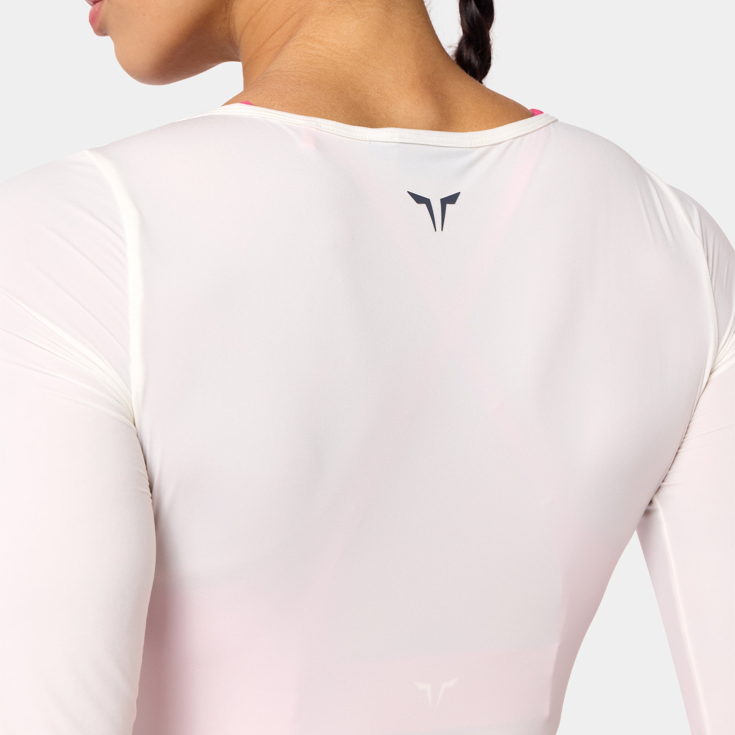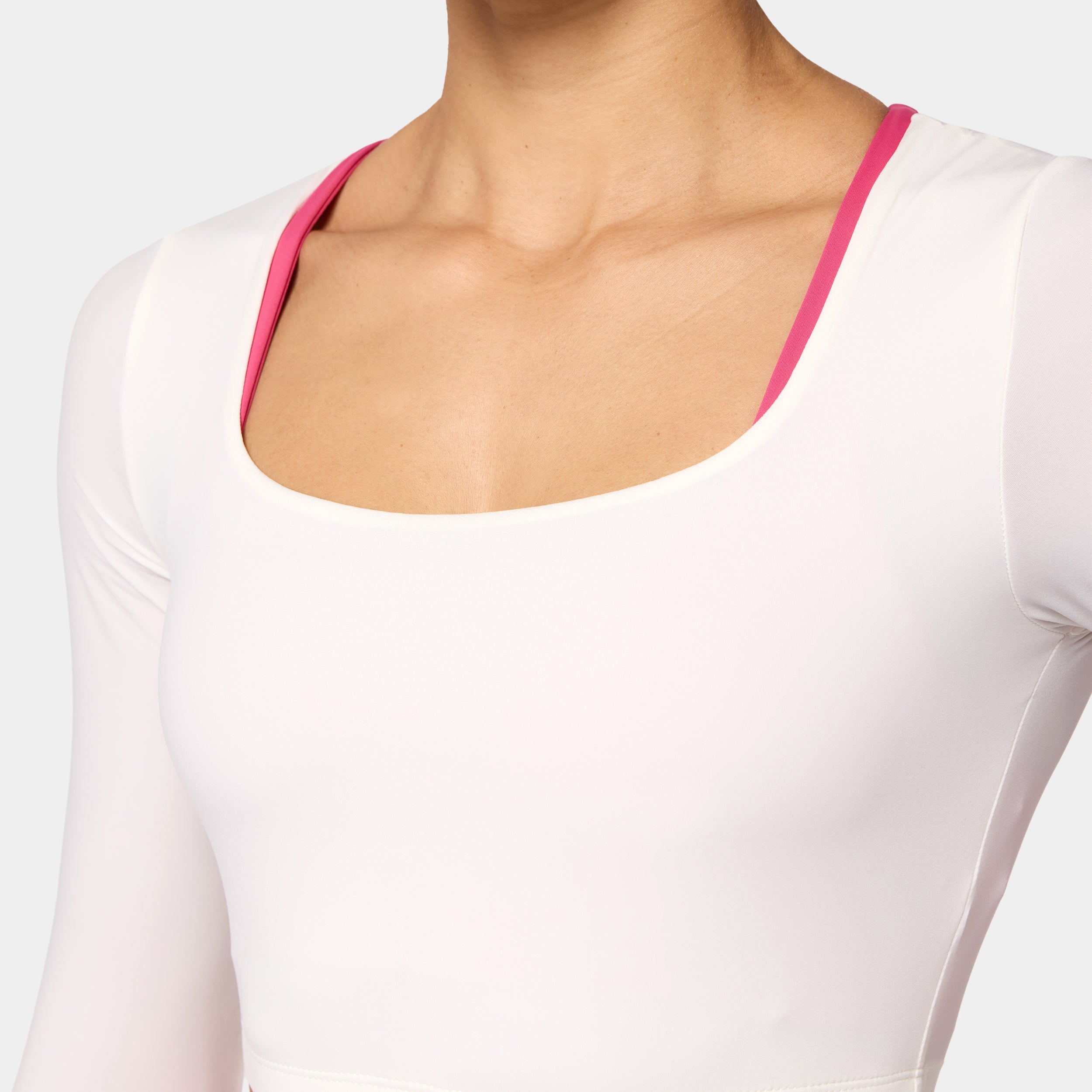 Lightweight fabric for all-day comfort Square neckline for a clean, modern look Set-in long sleeves for a structured fit Icon logo in silicone heat transfer on the back neck Athletic fit Model Wearing Small: Height 5'8" / 174 cm // Bust: 33.5" // Waist: 26.5" // Hips: 38"