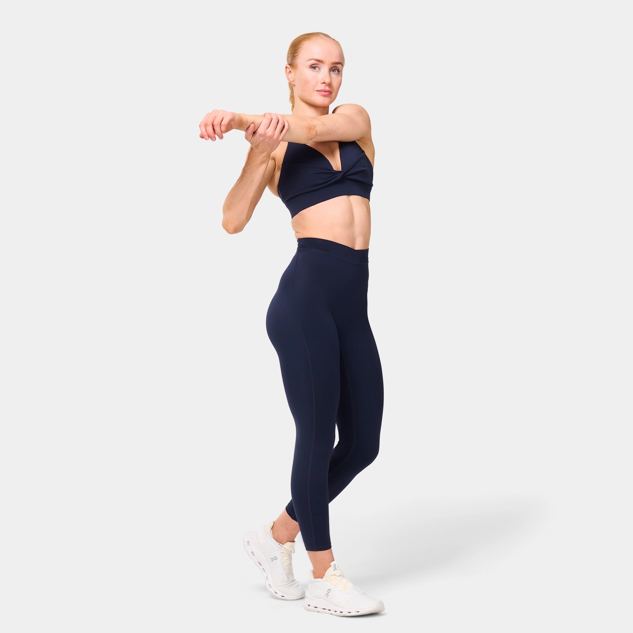 Ultra comfortable Soft brushed hand feel 4-way stretch Elastic-free front wrap detailing on the waistband No front rise for anti-chafing and anti-bunching Built-in gusset for a greater range of motion Wordmark elastic insert at back waistband Athletic fit Model Wearing Extra Small: Height 5'6" / 167 cm // Bust: 33.5″ // Waist: 26″ // Hips: 35.5″ Inseam length for all sizes: 24" / 60 cm