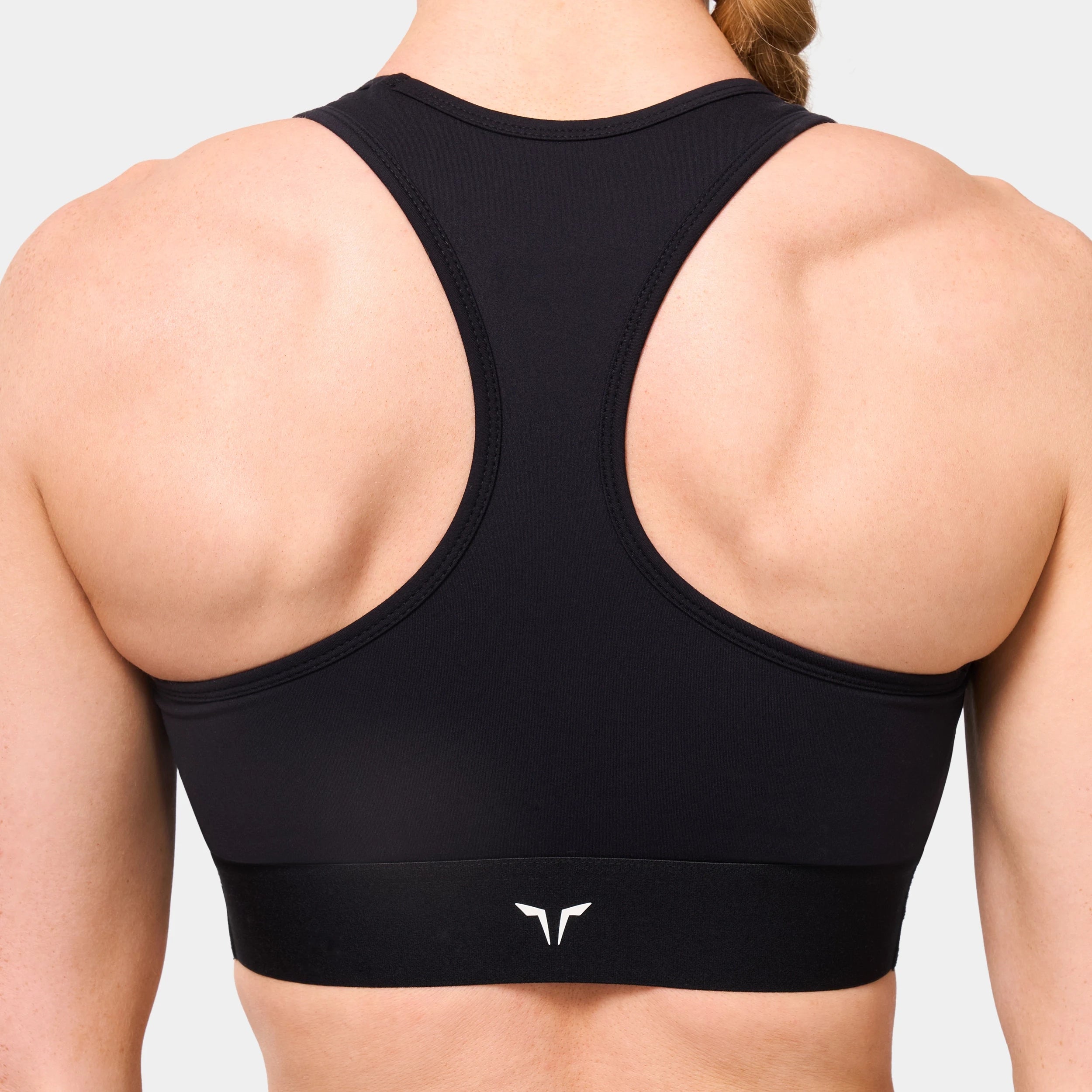 Scooped neckline for a soft, open look Foam internal construction for added support Wordmark elastic underbust band for a secure fit Muscle back design for freedom of movement Icon logo on the back All-over print option available on selected colourways Mid coverage B/D cup Model Wearing Extra Small: Height 5'6" / 167 cm // Bust: 33.5" // Waist: 26" // Hips: 35.5"