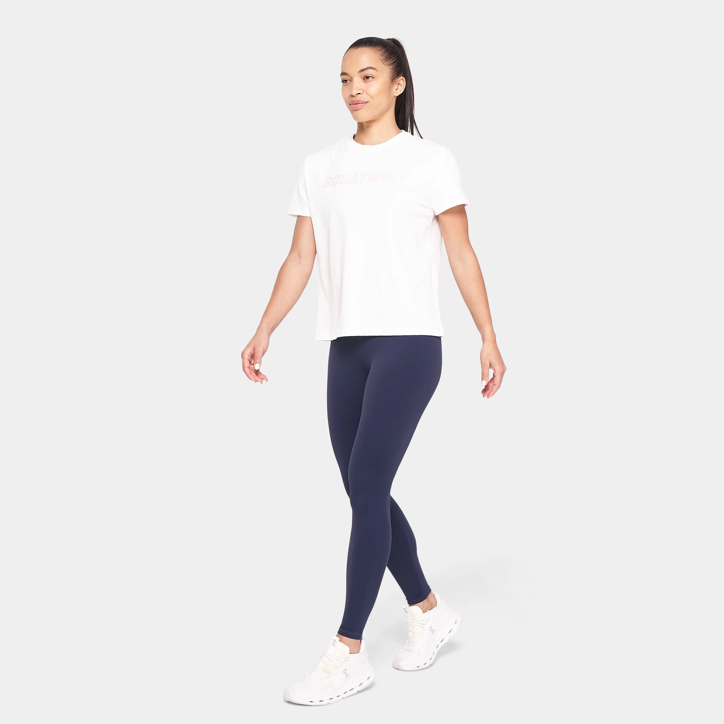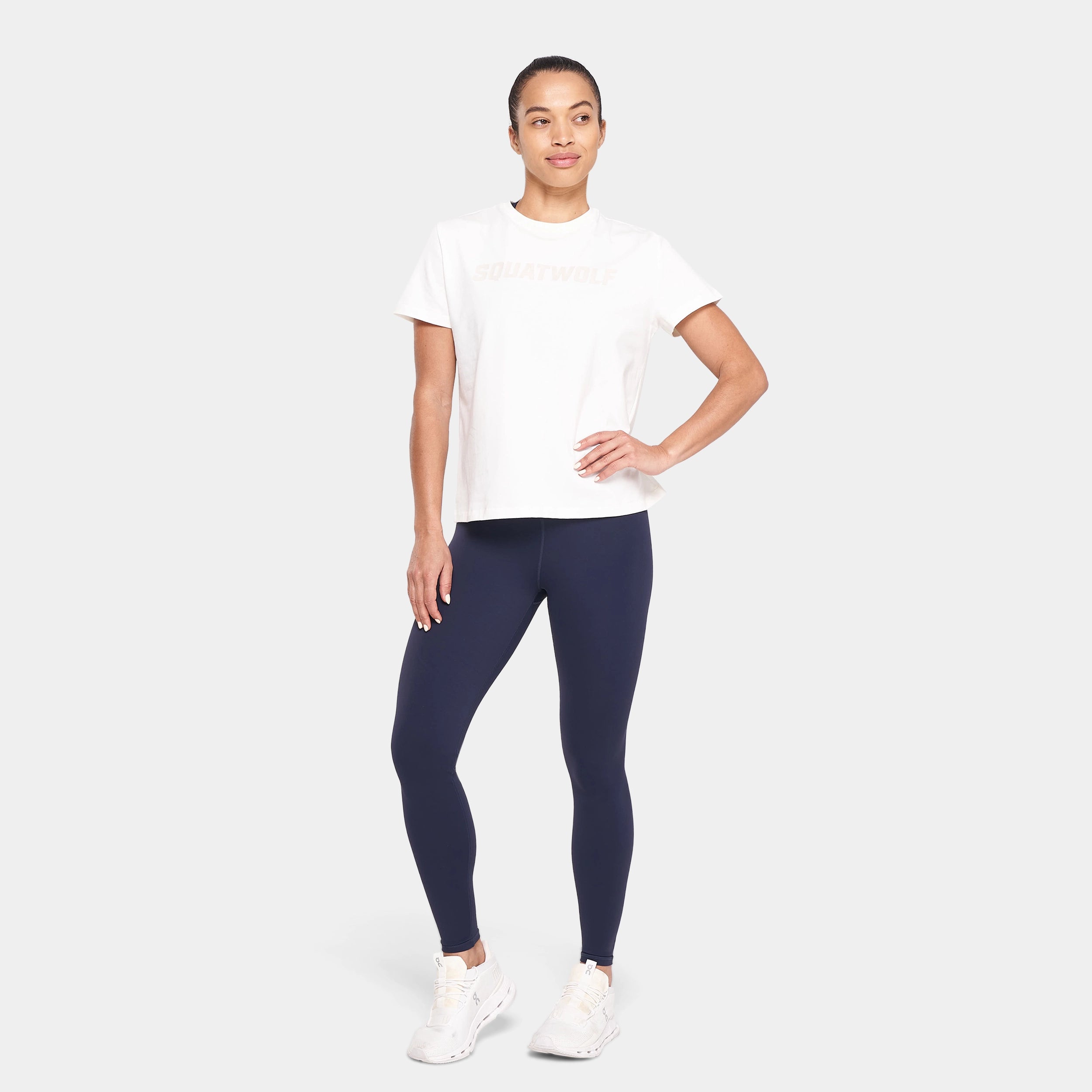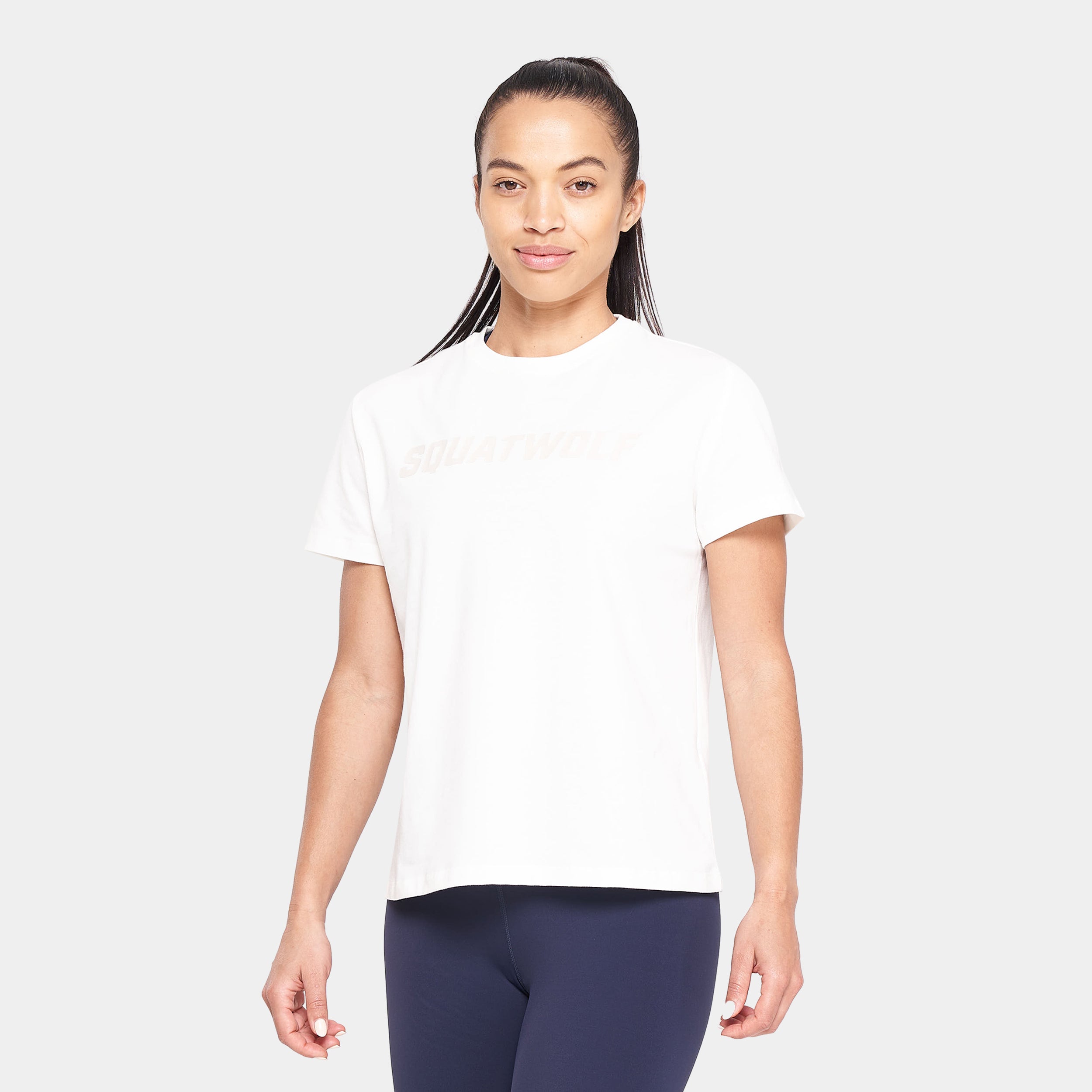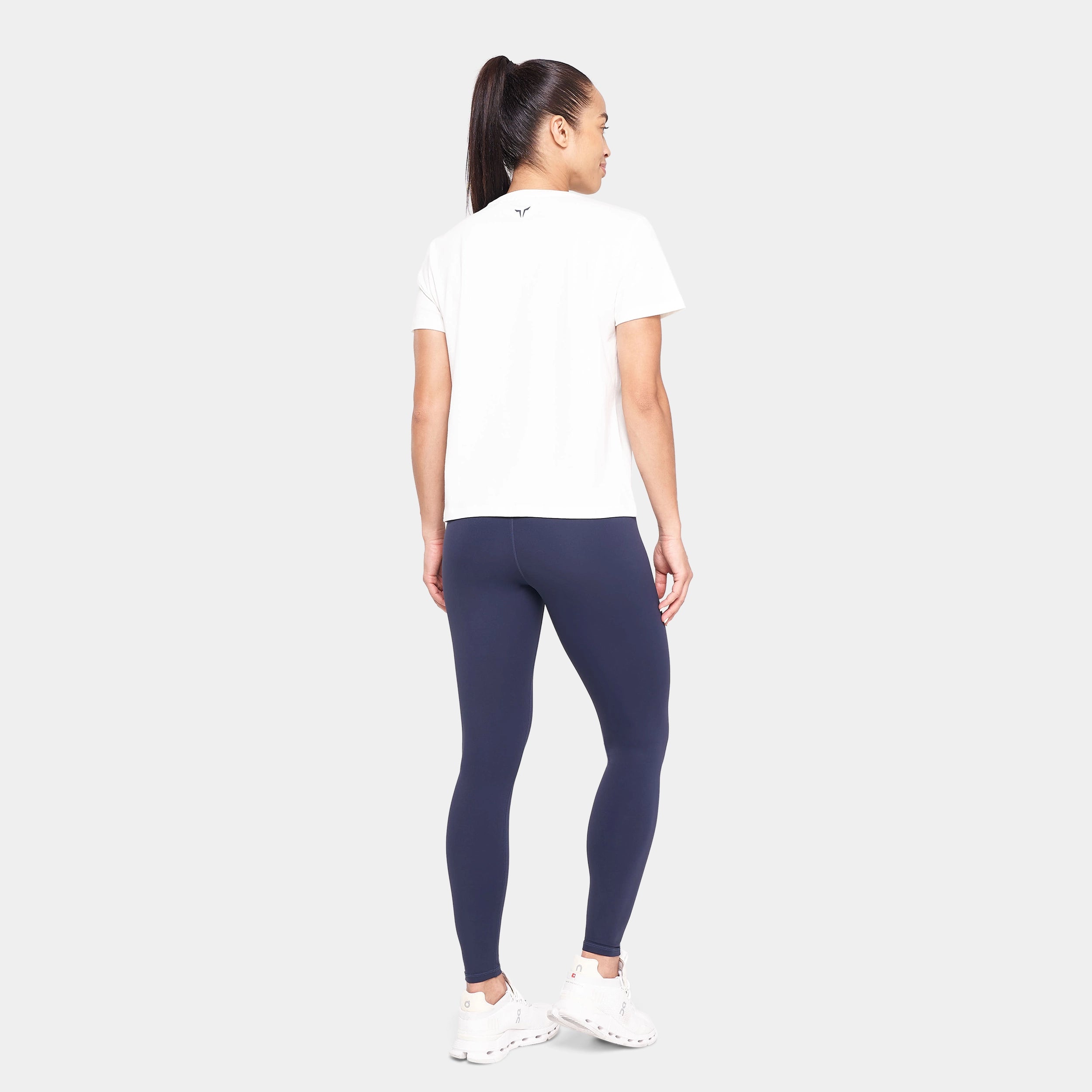Soft against the skin 2-way stretch Full length Ribbed crew neckline Set-in sleeve Wordmark graphic on chest Regular fit Model Wearing Small: Height 5'8" / 173 cm // Bust: 35″ // Waist: 27.5″ // Hips: 40″