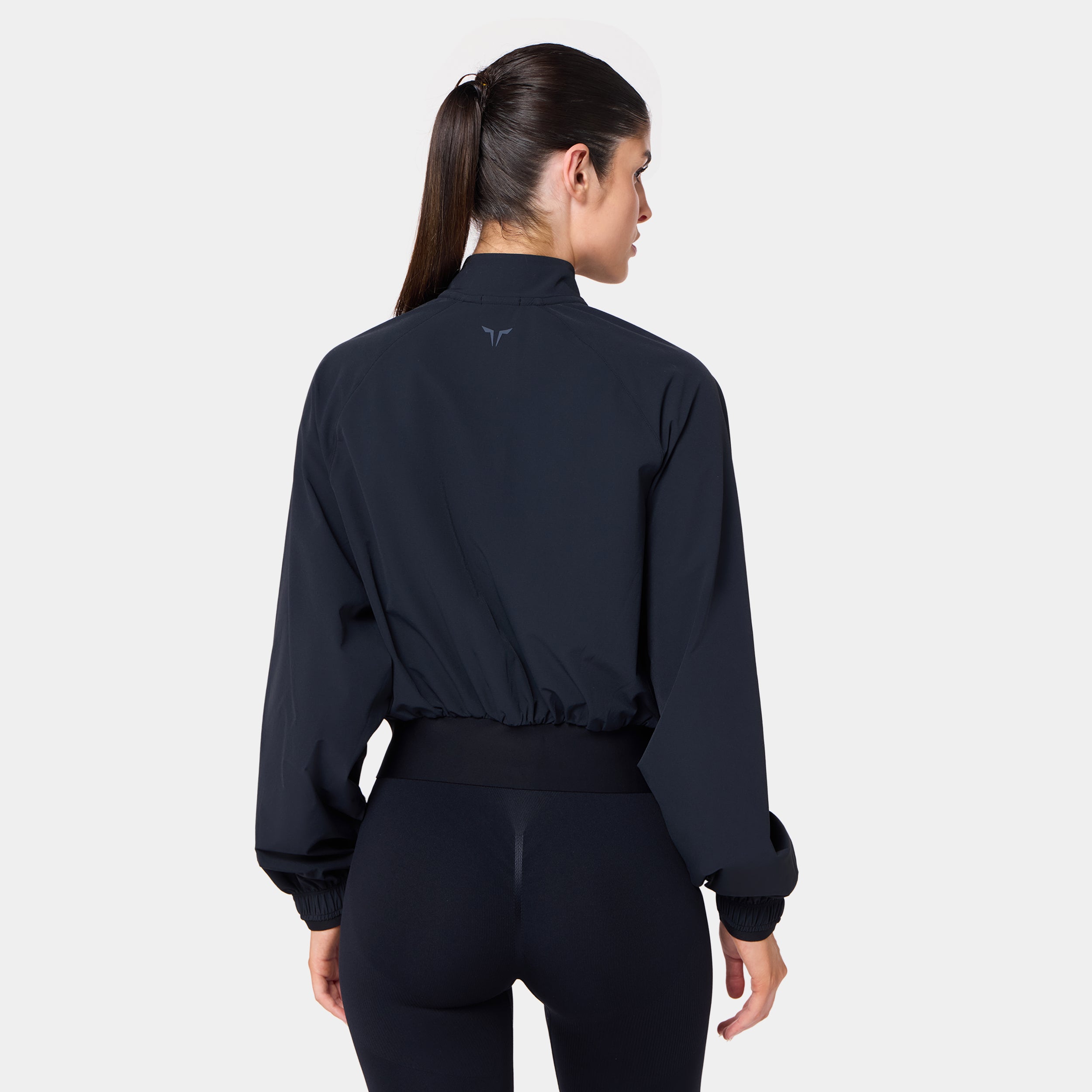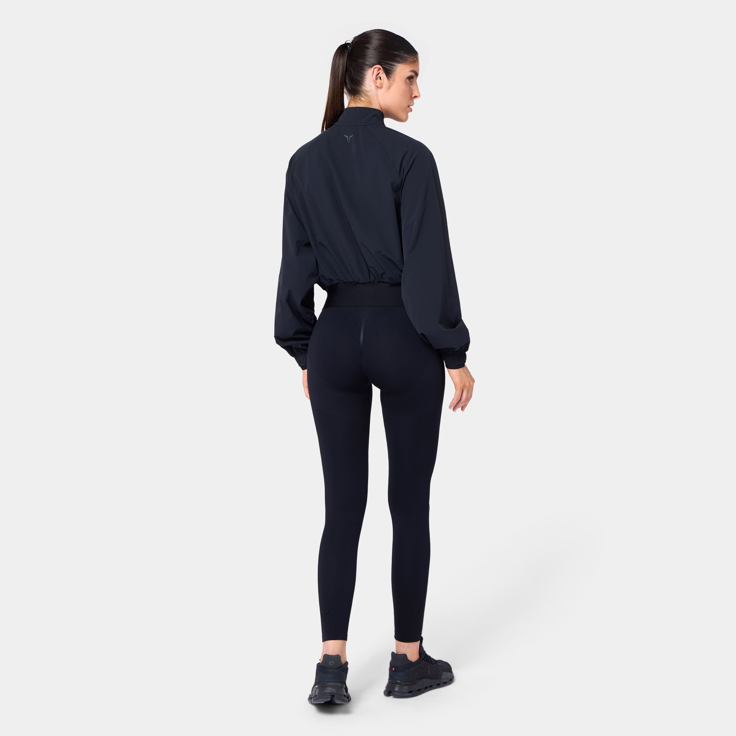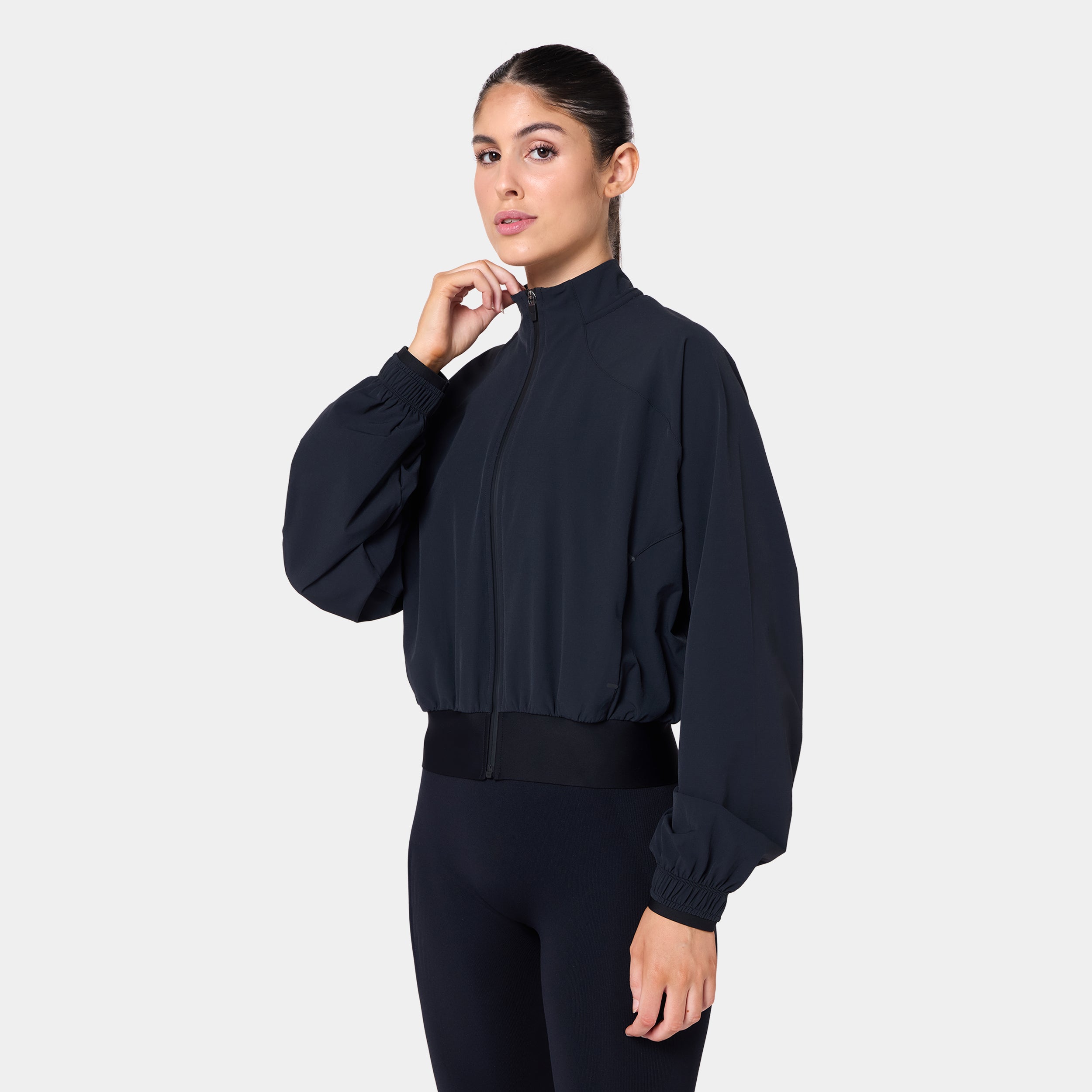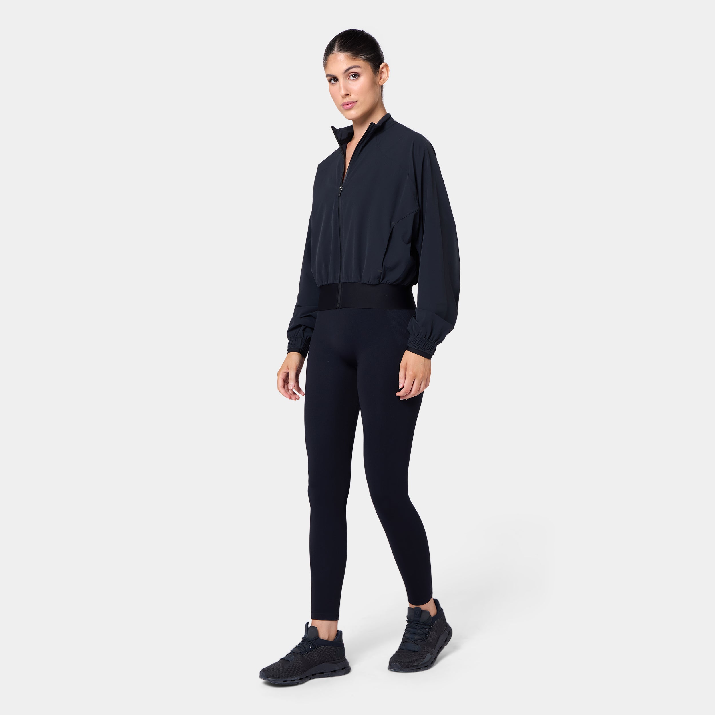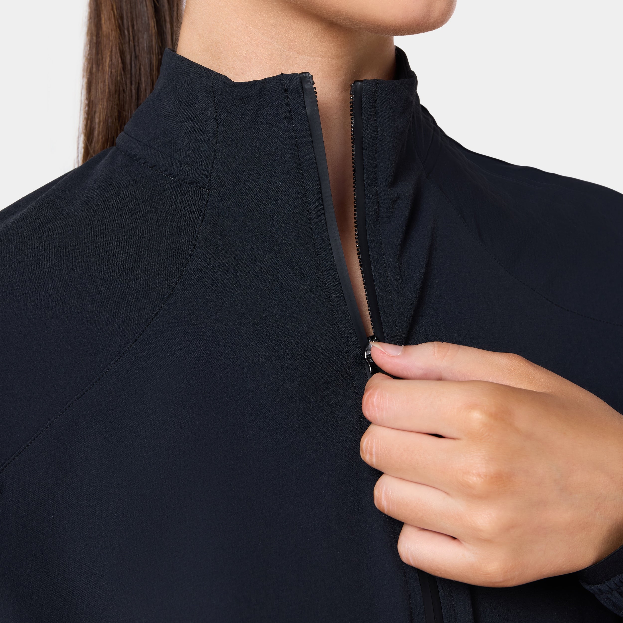 Grown-on front neckline for a smooth, clean finish Raglan long sleeves for easy movement Full PU-coated zip front closure for a sleek look Bonded bar tacks at the slip pocket opening for extra durability Exposed flat knit elastic detail at the cuff for a snug fit Icon logo in silicone heat transfer on the back neck Athletic fit Model Wearing Extra Small: Height 5'10" / 177 cm // Bust: 32" // Waist: 25.5" // Hips: 37.5"