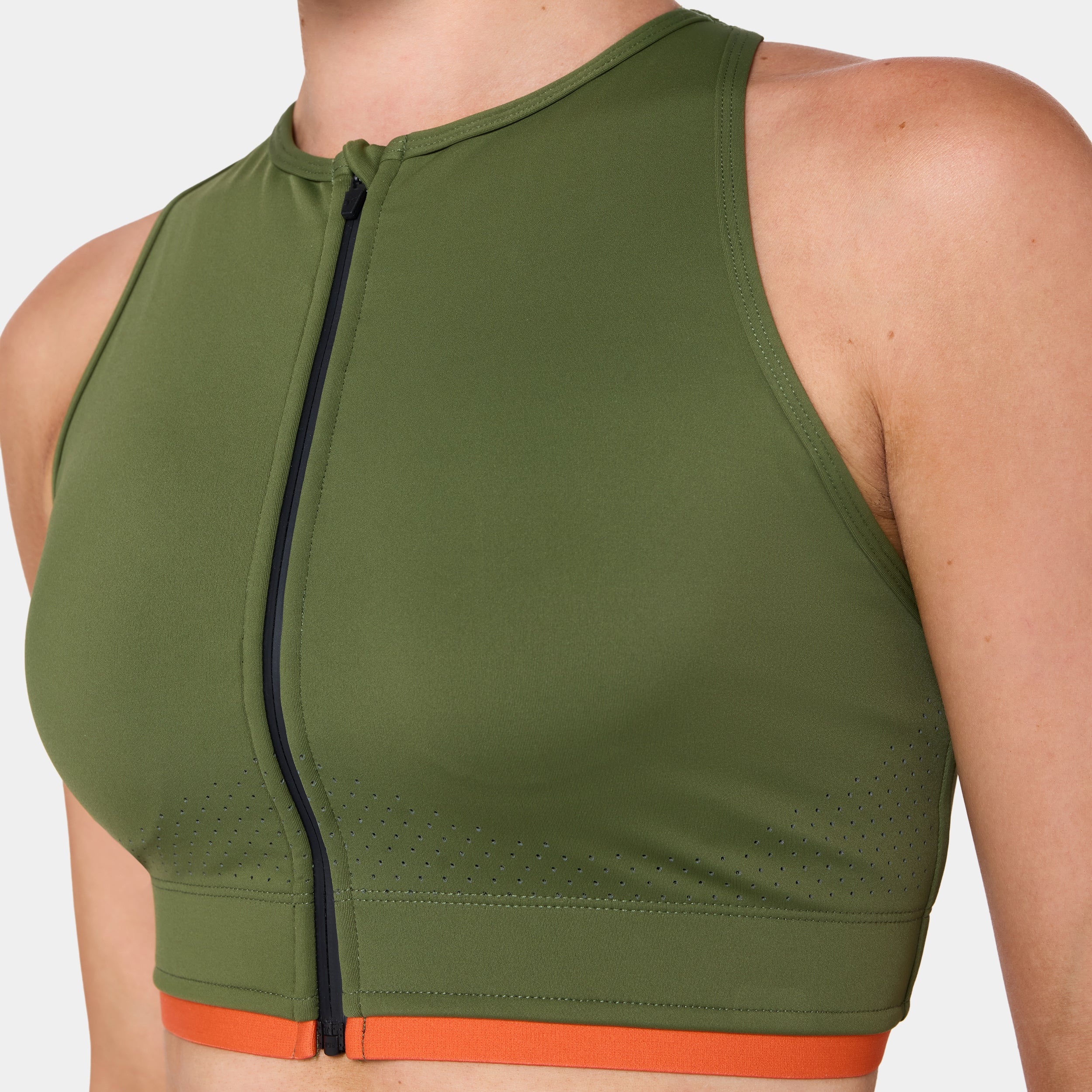 - Zip Up Adjustable Cross-Back Bra - Cypress